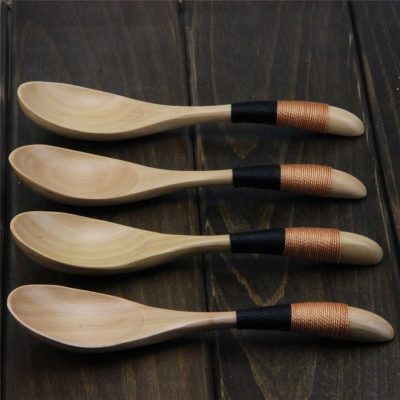 Wooden spoon refers to a tool used for drinking soup and serving rice. It is a whole piece of wood that goes to the center to become a pot shape and is fitted with a short wooden handle. The spoon is in the shape of a pointed leaf, the handle is flat and relatively wide, or the handle is thin, and the spoon body is an oval tongue.